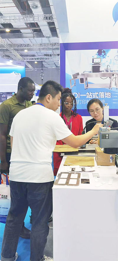 工作人員為觀眾演示賦碼打印檢測(cè)系統(tǒng)