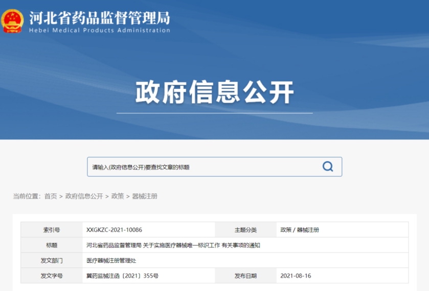 8月16日,河北省藥監(jiān)局印發(fā)《關(guān)于實(shí)施醫(yī)療器械唯一標(biāo)識(shí)工作有關(guān)事項(xiàng)的通知》(以下簡(jiǎn)稱“《通知》”),規(guī)定2021年11月1日起生產(chǎn)的醫(yī)療器械應(yīng)當(dāng)具有醫(yī)療器械唯一標(biāo)識(shí),以及申請(qǐng)首次注冊(cè)、延續(xù)注冊(cè)或者注冊(cè)變更時(shí),注冊(cè)申請(qǐng)人/注冊(cè)人應(yīng)當(dāng)提交產(chǎn)品標(biāo)識(shí)。